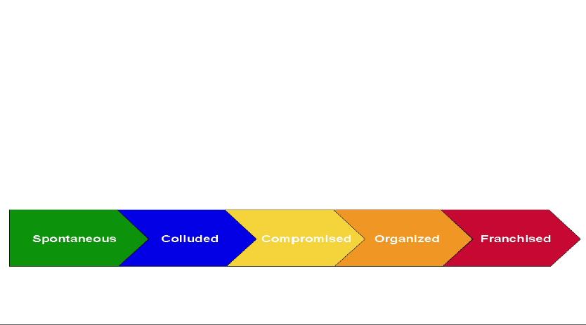 | Corrupt practices evolve with time, growing from spontaneous incidents to organized groups and can even be franchised in a company, government or industry. |